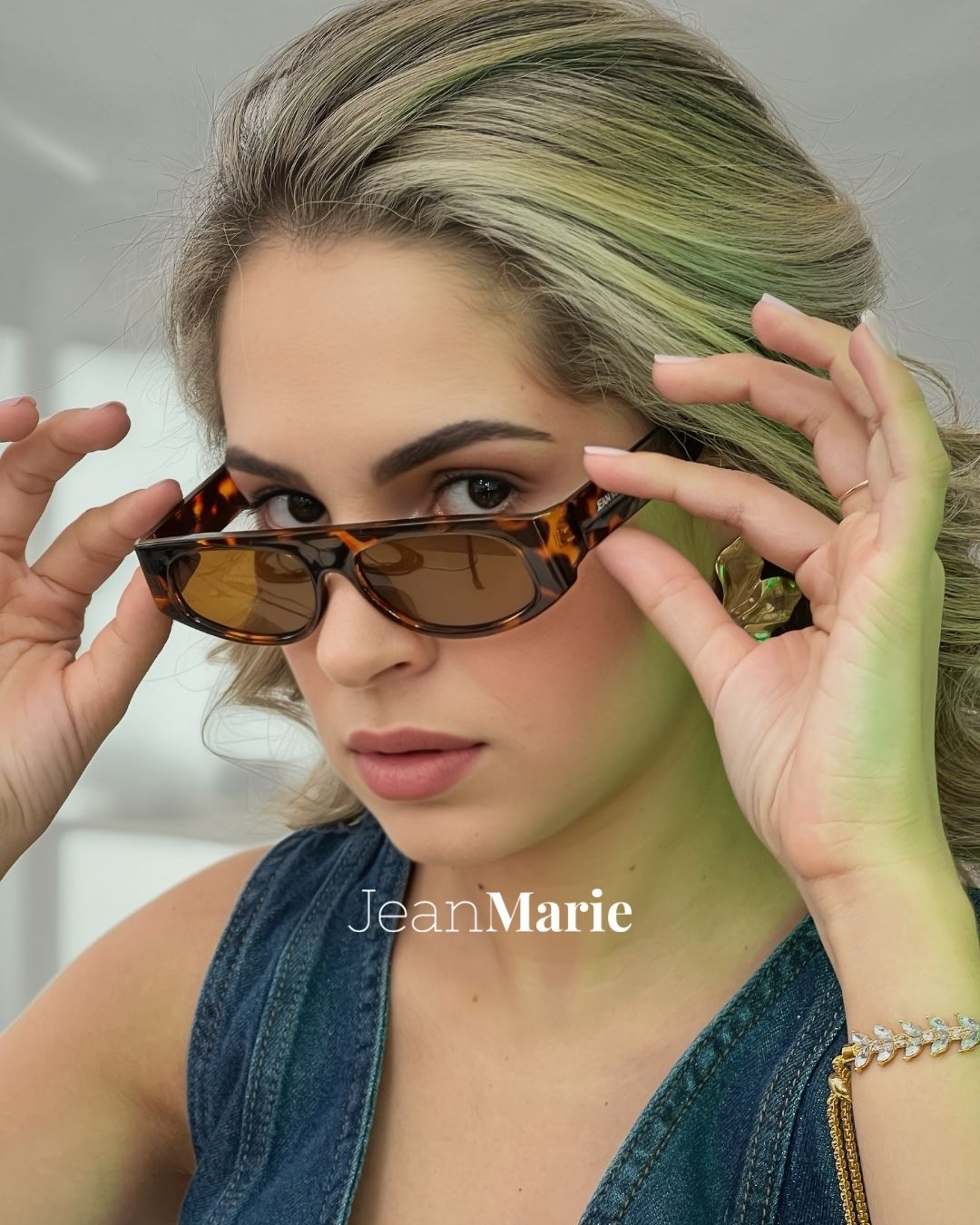 Óculos em acetato, estampa animal print tartaruga, lentes em policarbonato com proteção UV400.