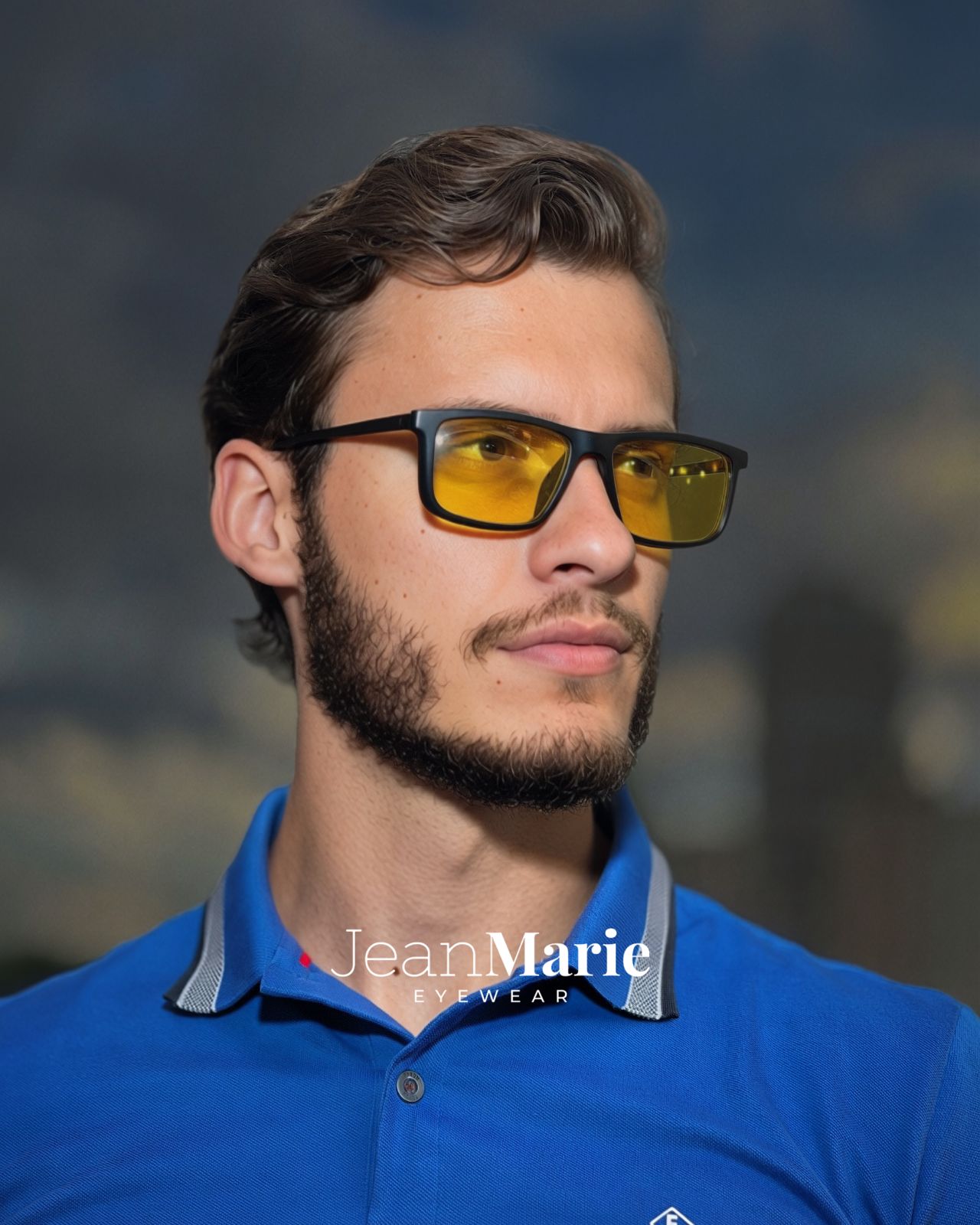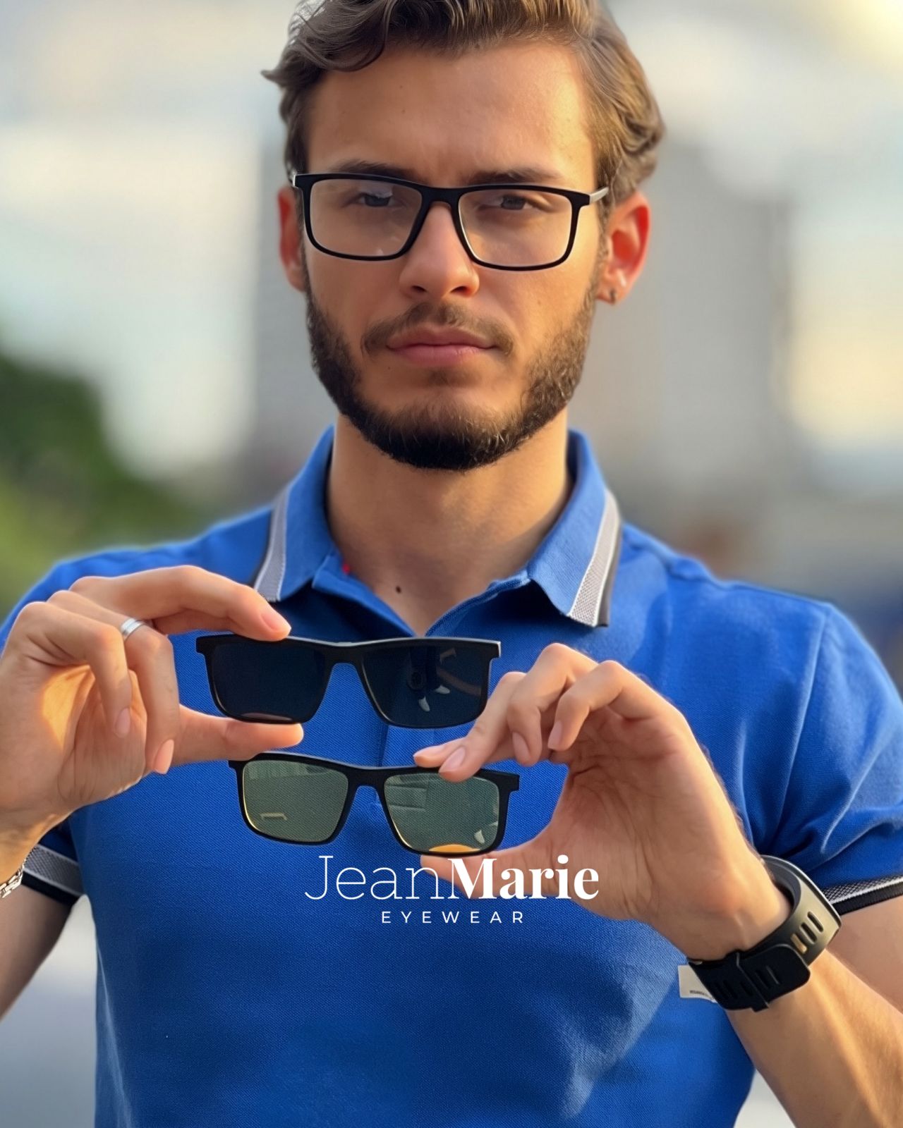 Óculos em acetato clip on, com 2 lentes, amarela e preta polarizadas e cristal com proteção Uv400.