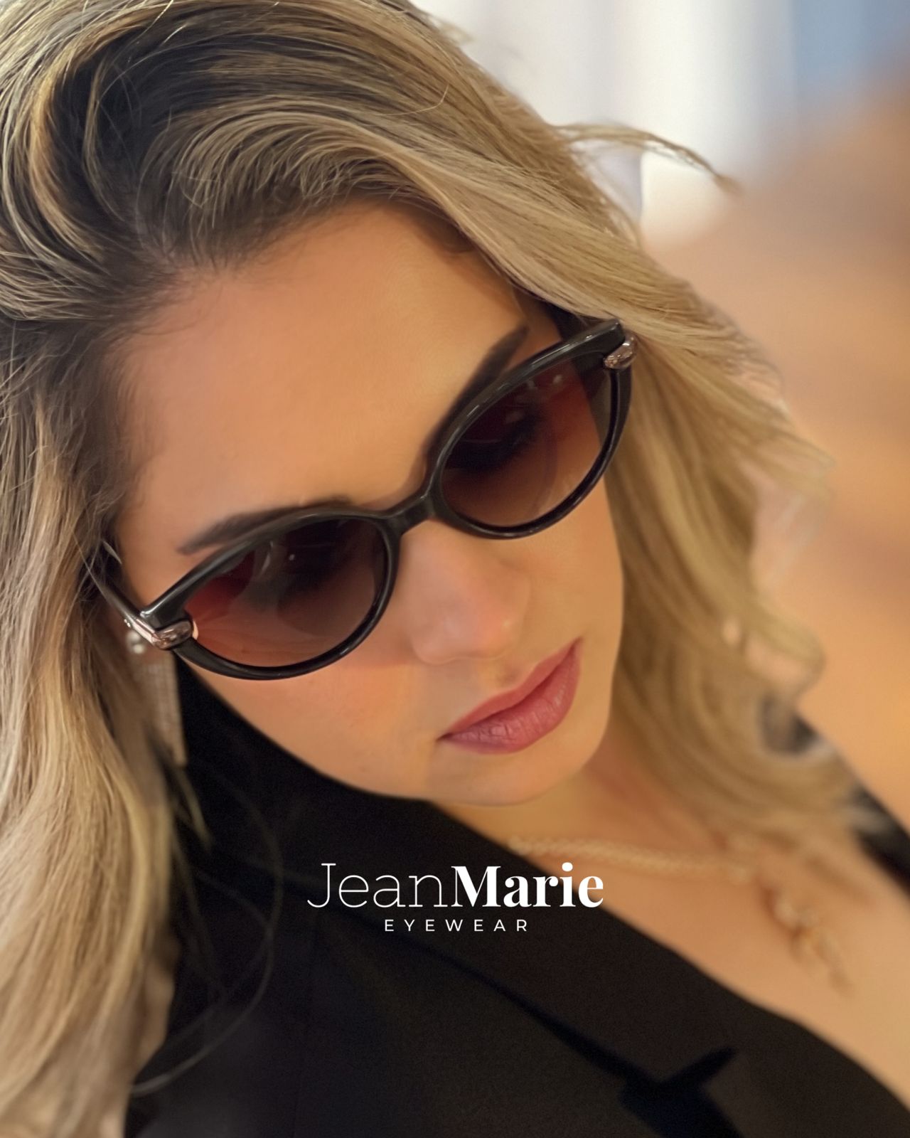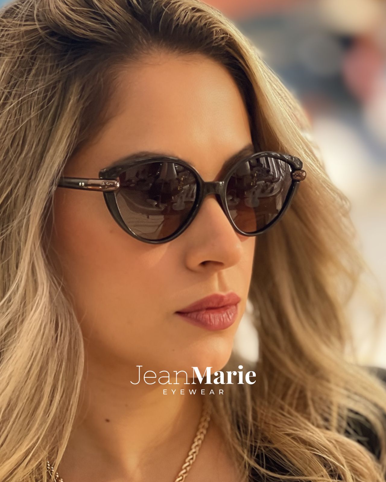 Óculos gatinho em acetato, lentes em policarbonato marrom degradê, com proteção UV400 e polarizadas.