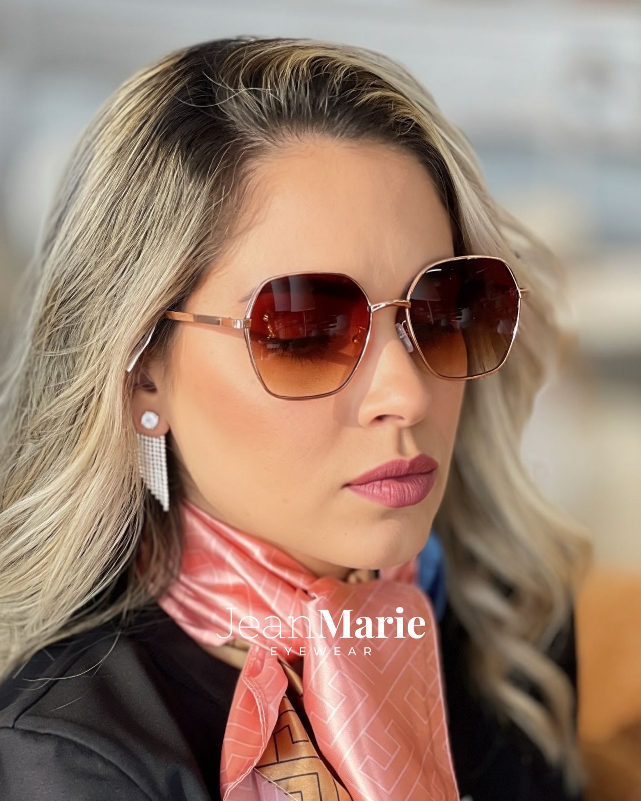 Óculos de sol quadrado, metal anticorrosivo, lentes marrom rosê com proteção UV400.
