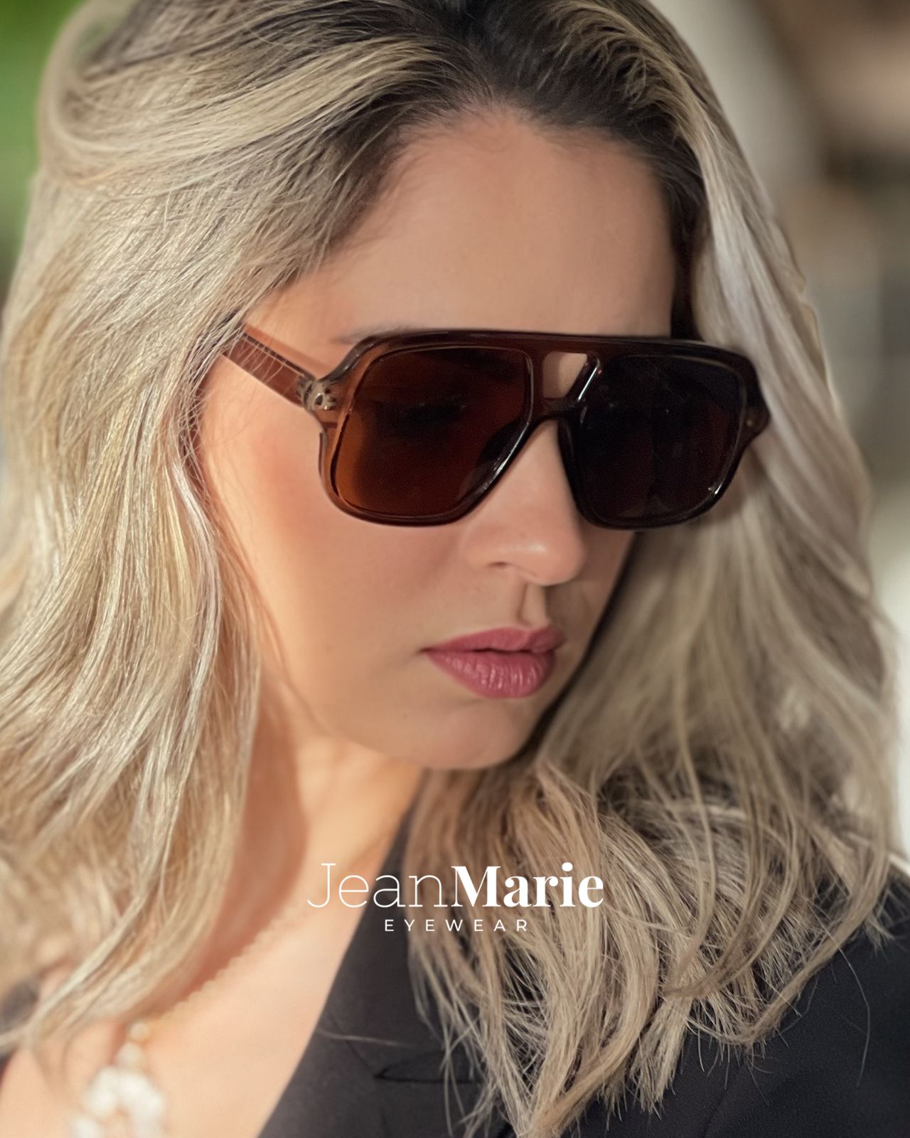 Óculos aviador em acetato, lentes em policarbonato preto degradê e proteção UV400.