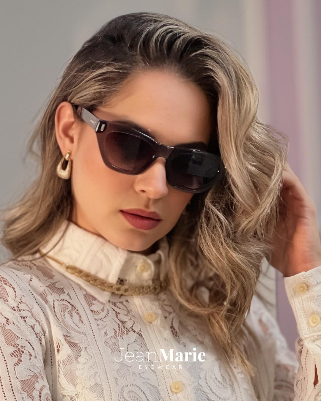 Óculos gatinho acetato cinza, lentes em policarbonato cinza com proteção UV400.